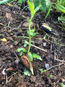 Yakında inşaat başlayacak olan tepeden söküp getirdiğim dağlalelerini (anemone coronaria) ekmek için badem ağacının yakınındaki otları yoluyordum ki ne göreyim; ağaç olma yolculuğuna çıkmış bir badem!