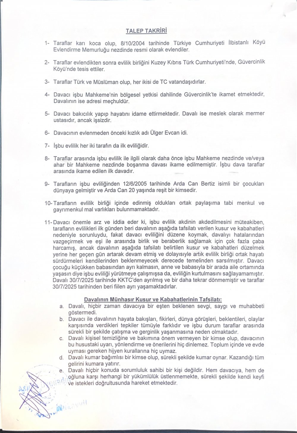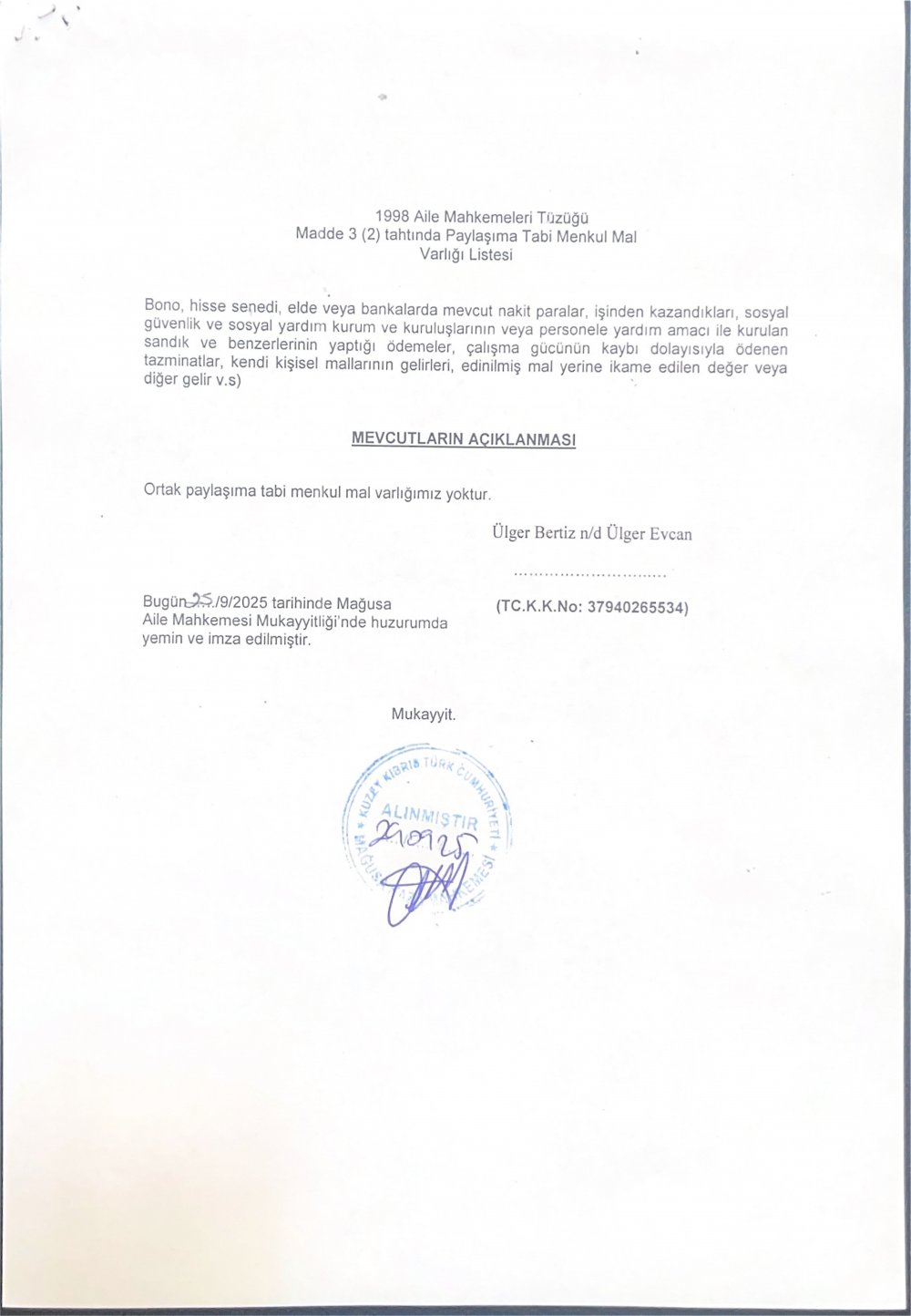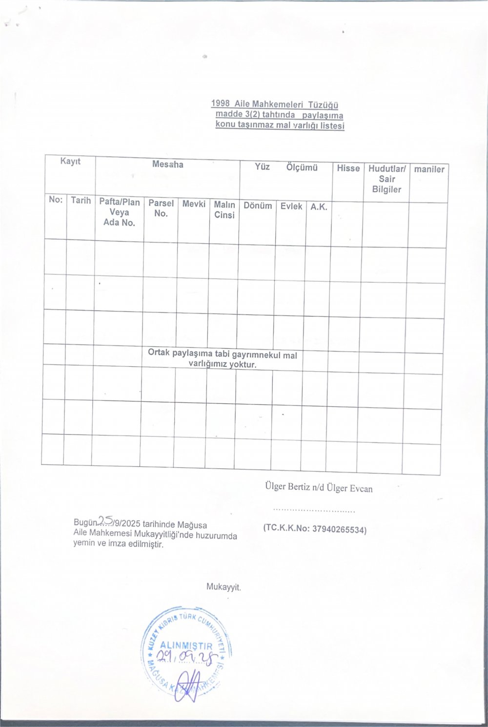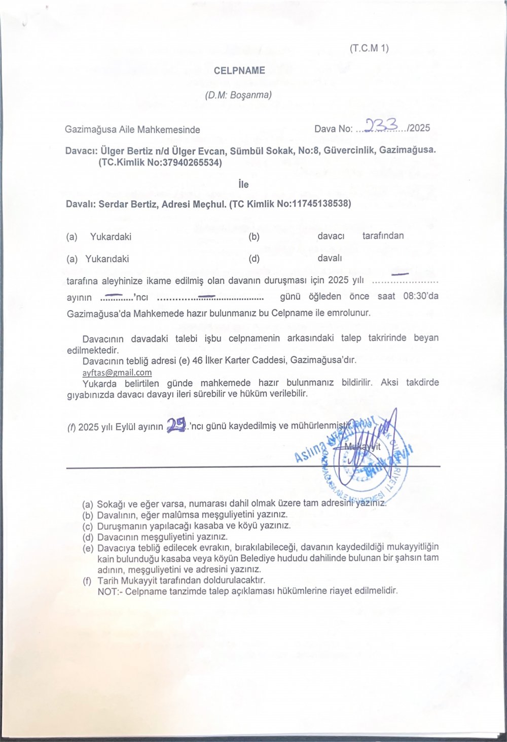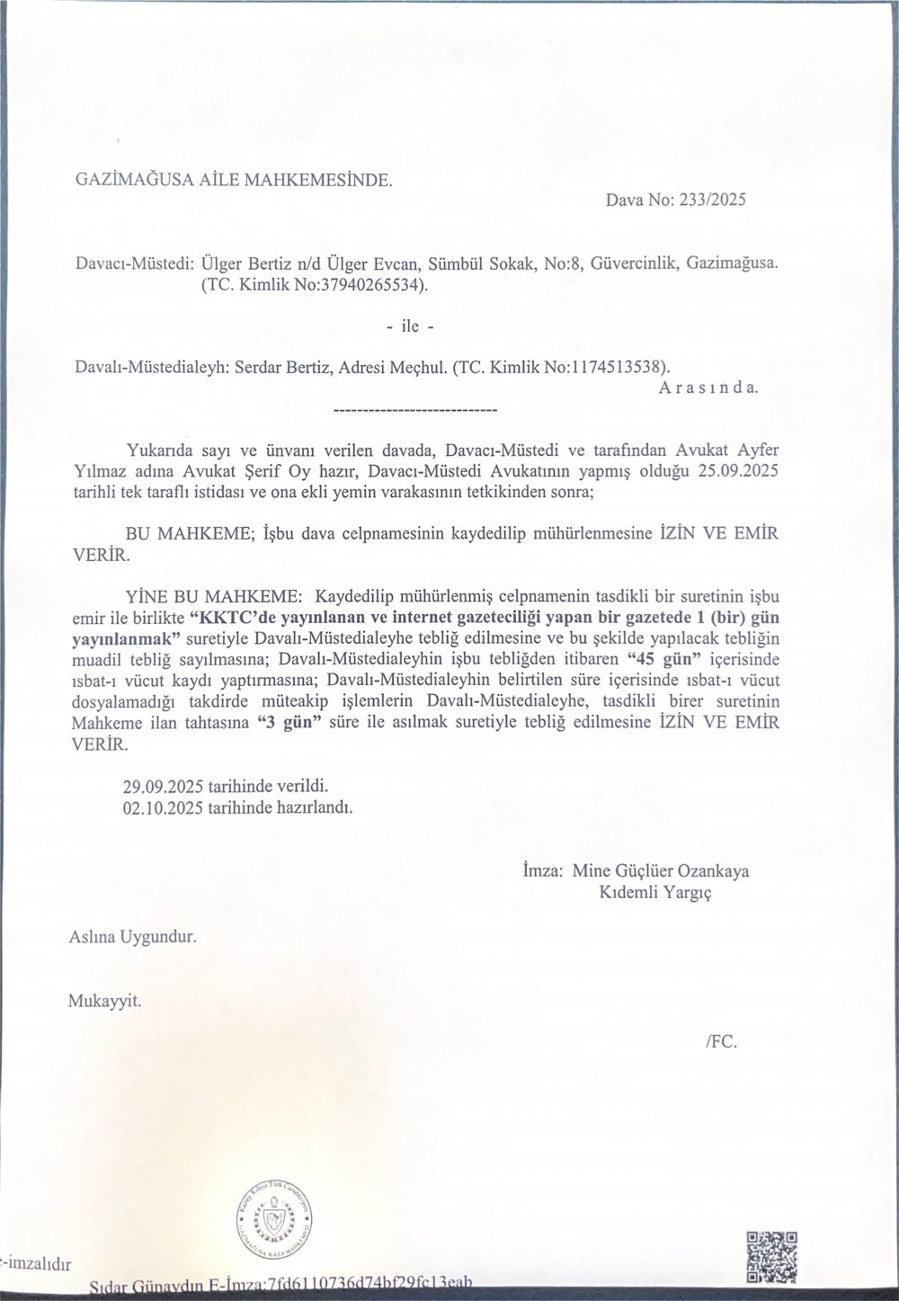 Gazimağusa Aile Mahkemesi Dava No 233-2025