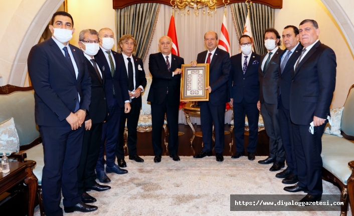 Cumhurbaşkanı Ersin Tatar, Mersin Ticaret ve Sanayi Odası başkan ve yetkililerini kabul etti.