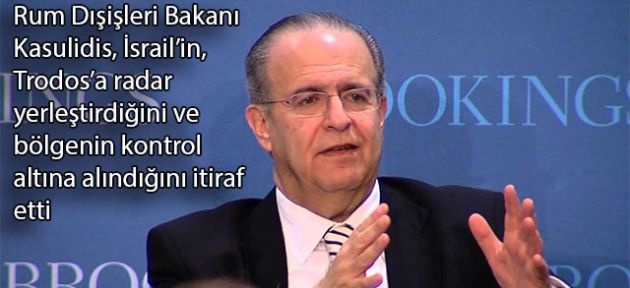 Rum Dışişleri Bakanı Yoannis Kasulidis, İsrail’in, Trodos dağlarına yerleştirdiği radarla, bölgenin kontrol altına alındığını itiraf etti. Kaulidis, sözde Rum egemenliği altındaki bölgede yer alan petrol ve doğal gaz çalışmalarının bu şekilde izlendiğini belirtirken “teknoloji konusunda yaşadığımız eksiklik bu şekilde giderilmiş oldu”dedi.