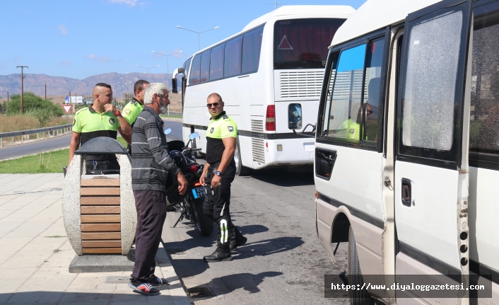Lefkoşa-Girne anayolu Gönyeli çemberindeki durakta yapılan kontrollerde gerek öğrencileri gerekse vatandaşları taşıyan minibüslerle, otobüsler denetlendi. Bir noktada yapılan denetimde 15 aracın evraklarının eksik olduğu tespit edildi.