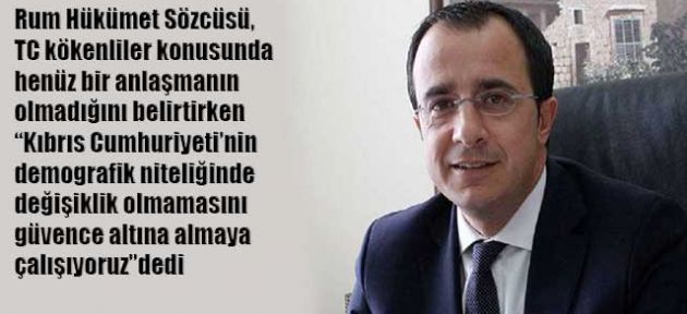 Alithia’ya göre DİKO’nun, Rum Dışişleri Bakanı Kasulidis’in Rus medyasına TC kökenli KKTC vatandaşları konusunda yaptığı açıklamayla ilgili sorusu üzerine Hristodulidis, “Müzakereler çerçevesinde kimlerin Kıbrıs Cumhuriyeti vatandaşlığı alacağı tartışılıyor ancak şu ana kadar bu konuda bir anlaşmaya varılmadı. Biz, Kıbrıs Cumhuriyeti’nin 1960’taki demografik niteliğinde değişiklik olmamasını güvence altına almaya çalışıyoruz” dedi.