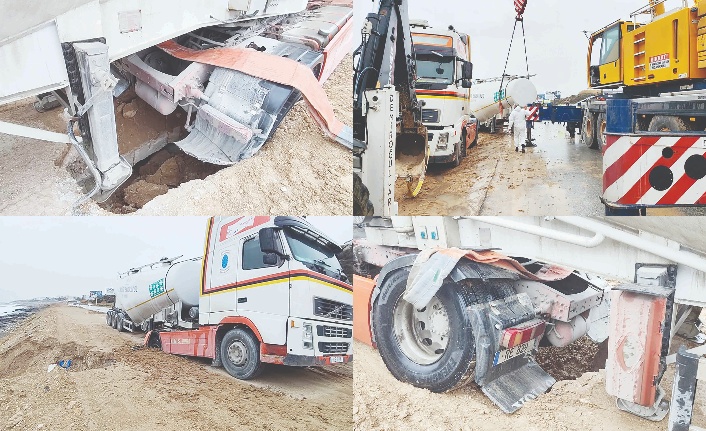 Bahçeli–Esentepe istikameti üzerinde seyir halinde olan çimento yüklü TIR, yol kenarına park ettiği sırada zeminin çökmesi sonucu mahsur kaldı. Olay, saat 11.00 sıralarında sürücünün aracı yol kenarı-na güvenli bir şekilde park etmek istediği esnada meydana geldi. Zeminin çökmesi sonucu TIR’ın ön ve arka tekerlekleri çöküntüye gömüldü.