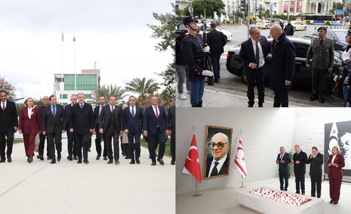 Akar ve beraberindeki heyet, Rauf Raif Denktaş'ın anıt mezarında Denktaş'ın oğlu Serdar Denktaş tarafından karşılandı.