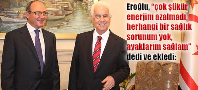 Cumhurbaşkanı Derviş Eroğlu, ikinci kez adaylık konusunda henüz resmi bir açıklama yapmadı. KKTC’nin 31’inci kuruluş yıldönümü olan 15 Kasım’dan sonra açıklama yapacağını belirten Eroğlu, kendisine ‘artık emekli çıksın” diyenlere önemli mesajlar gönderdi. Sağlığının yerinde olduğunu, sabah 08.30’dan itibaren çalışmaya başladığını ve gücünü koruduğunu belirten Eroğlu “koşabilirim”dedi.