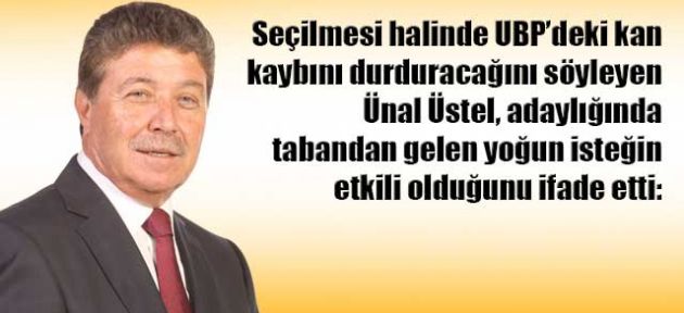 Seçilmesi halinde UBP’deki kan kaybını durduracağını söyleyen Ünal Üstel, adaylığında tabandan gelen yoğun isteğin etkili olduğunu ifade etti: