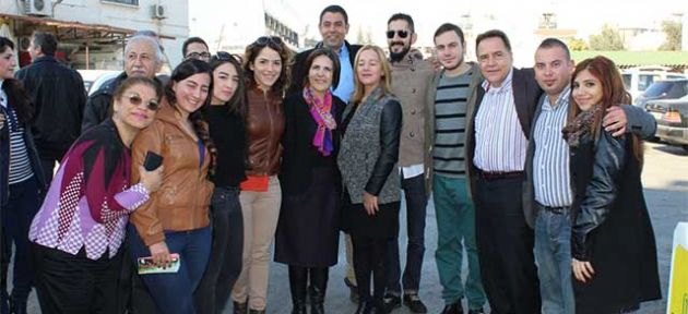 Siber’e Terminal açık pazar ziyaretinde Sağlık Bakanı Dr. Ahmet Gülle, Lefkoşa İlçe Başkanı Mutlu Azgın, Lefkoşa belediyesi meclis üyeleri Tolga Ahmet Raşit ve Hüseyin Kıral ile kadın ve gençlerden oluşan destekçileri eşlik etti.