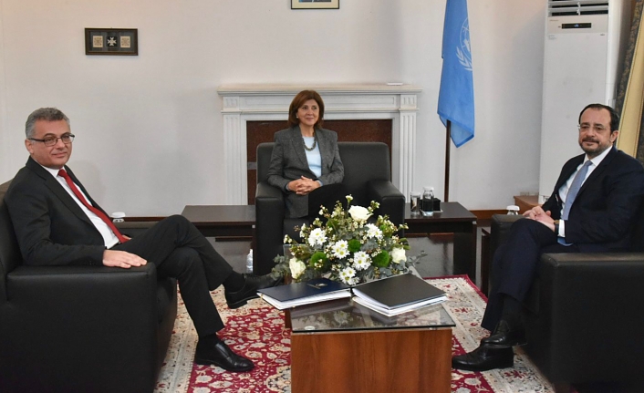 Cumhurbaşkanı Tufan Erhürman ve Kıbrıslı Rum lider Nikos Hristodulidis, Birleşmiş Milletler (BM) Genel Sekreteri’nin Kişisel Temsilcisi Maria Angela Holguin Cuellar’ın ev sahipliğinde bir araya geldi.