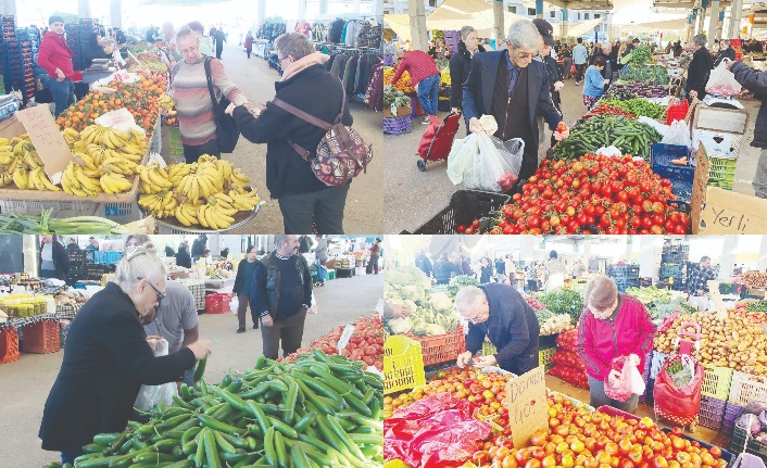 Merkez Lefkoşa’da kurulan açık pazarda dün ürün fiyatlarının geçtiğimiz haftaya göre yükseldiği gö-rüldü. Kolokas 150, salatalık 100 liradan satışa sunulurken, çileğin fiyatı 600 liraya fırladı. Kestane 400, muşmula ve zeytin 200, incir 180, kivi 170 liradan tezgaha konulurken,  üzüm ve armut 120 liradan alıcı bekledi. Domates ve taze fasulye 100, nar 80, muz, brokoli, patlıcan, kabak ve pancar 70 liradan tezgahtaki yerini aldı. Pazara alışverişe gelen vatandaşlar, pazarda çoğu ürünün fiyatının arttı-ğını belirtirken, yeni yıl üzerine zam furyasının sürekli yaşanan bir durum olduğunu dile getirdi.