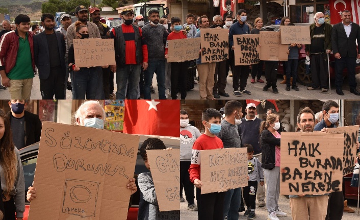 Yetkililerin kamera konacağını söylediği noktada “Sözünüzde durun”, “Bakan değil yapan istiyoruz”, “Halk burada, Bakan nerede” yazılı pankartlarla toplanan bölge halkı, 20 dakika boyunca yolu kapattı.