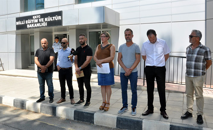 Kıbrıs Türk Öğretmenler Sendikası (KTÖS), Milli Eğitim ve Kültür Bakanlığı önünde, eğitimde yaşanan sorunlarla ilgili basın açıklaması yaptı.