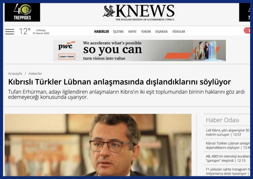 Rum lider Hristodulidis’in Lübnan ile imzaladığı deniz yetki alanları anlaşması, Kıbrıs Cumhuriyeti adına imzalanmıştır. Öyle anlıyorum ki bizim itirazımız Hristodulidis’in tek başına bu anlaşmaya imza koyamayacağı şeklindedir. Bir itirazımızın kaynağı da 1960 anlaşmalarıdır.
