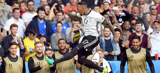 Panzerler, turnuvadaki 4 maçında toplam 6 gol kaydedip hiç yemeyerek önemli bir istatistiğe de imza attı. Lille'deki Stade Pierre Mauroy Stadı'ndaki maçta oyunun kontrolünü sürekli elinden tutan Almanya, 8'de Jerome Boateng'in uzaktan golüyle öne geçti.