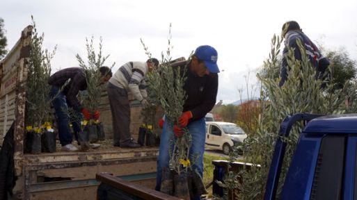 Bu amaçla talepte bulunan yaklaşık bin vatandaşa 16 bin Gemlik türü zeytin fidanı dağıttıklarını anlatan Saral, özellikle tepelerin yamaçlarında boş arazilerin zeytincilik için uygun olduğunu kaydetti.