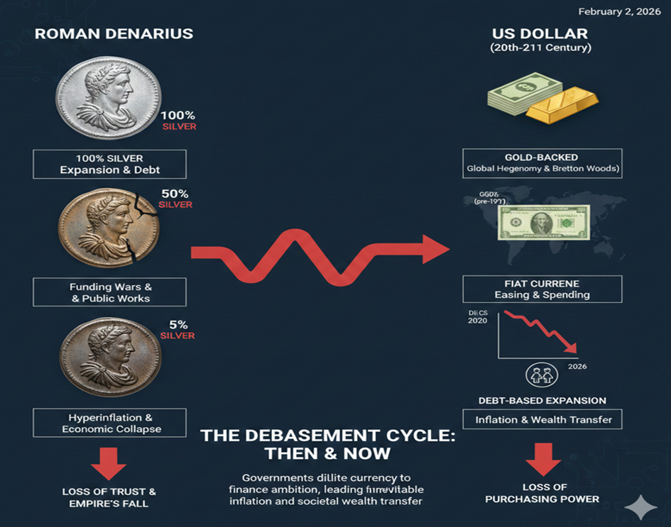 Dünya tarihinin en büyük borç sarmalındayız. ABD’nin 38 trilyon dolarlık borcunu birileri ödeyecek. Bu bedeli parası olan ama parasını koruyamayan orta sınıf ödeyecek. Hükümetler borçlarını finanse etmek için karşılıksız para basar, enflasyon yaratır ve sizin nakit paranızın değerini eritir. Bu bir servet transferidir! Enflasyon ve devalüasyon tesadüf değildir, bilinçli bir ekonomik tercihtir. Eğer siz paranızı biriktirir ve atıl tutarsanız, bu sistemin finansörü olursunuz.